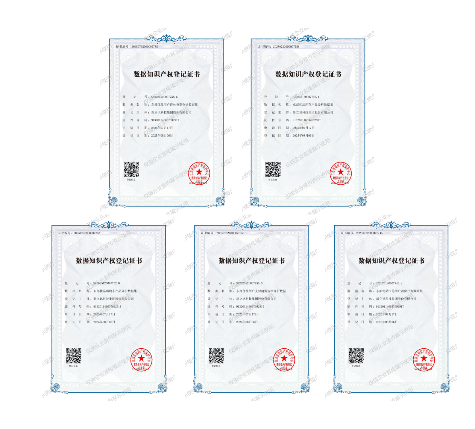 近日,新立訊科技集團股份有限公司(以下簡稱"新立訊")完成含農產品商品分析、用戶群體、交易習慣、支付與消費規律五大數據集通過江蘇省數據知識產權登記系統審核,獲得數據知識產權登記,首次形成新立訊科技集團農產數據要素資產。