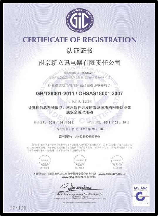 南京新立訊電器有限責任公司始終堅持標準化管理,對質量、環境、安全等環節中的管理流程進行不斷完善,并通過有效運營,提高了全體員工的質量與健康安全意識,也為進一步的市場開拓提供了強有力的支撐,提升了新立訊企業的形象及競爭力。