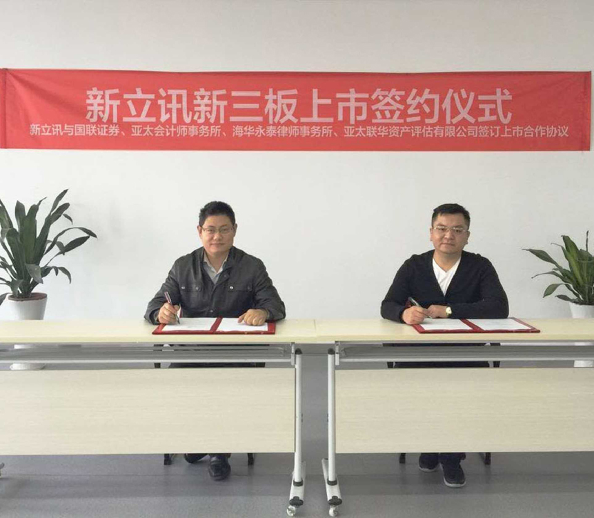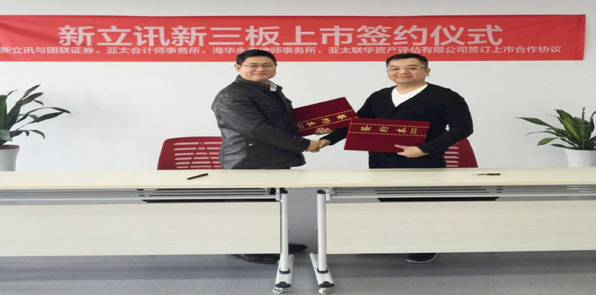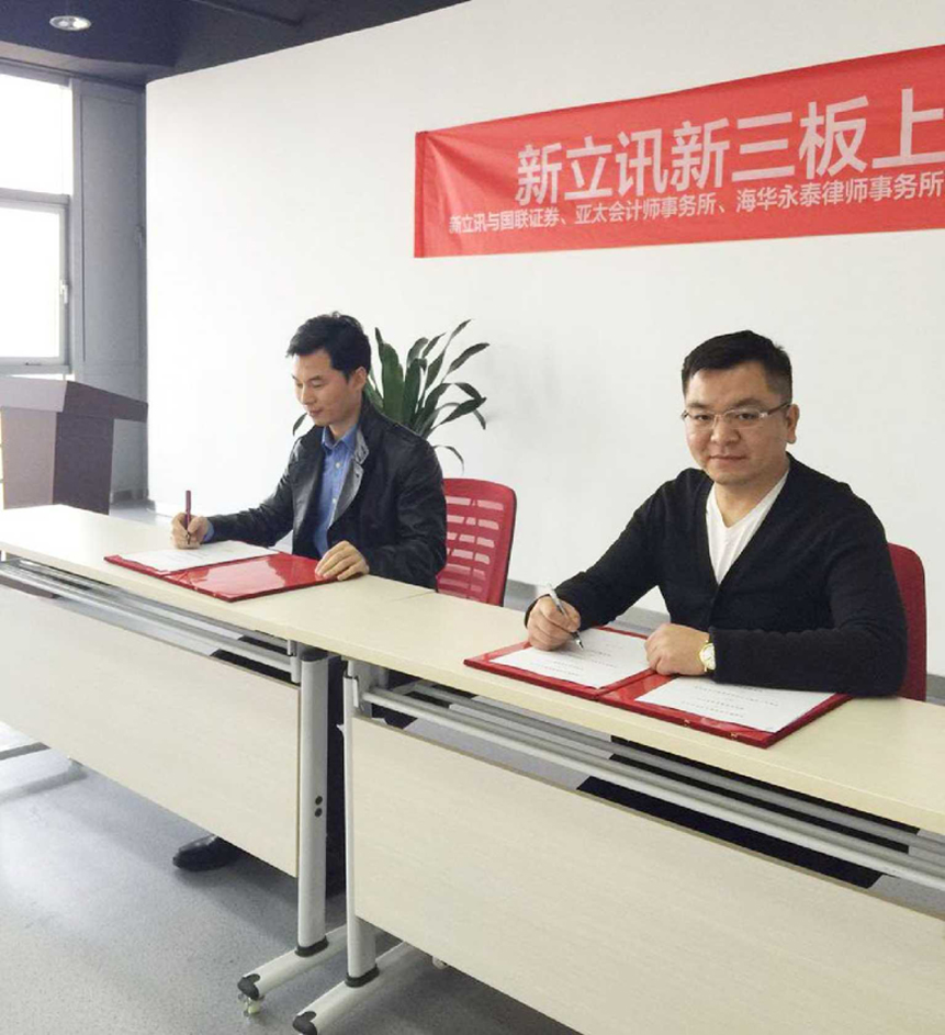 南京新立訊與國(guó)聯(lián)證券、亞太(集團(tuán))會(huì)計(jì)師事務(wù)所、海華永泰律師事務(wù)所簽訂新三板上市合作協(xié)議