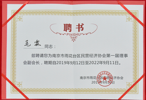 大會通過提名和投票的方式選舉出了會長、副會長、常務理事單位等,新立訊榮獲“南京市雨花臺區民營經濟協會副會長單位”,董事長毛霖先生被選舉聘任為第一屆常務理事、第一屆理事會副會長。