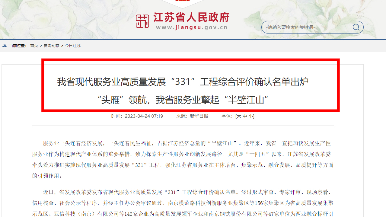 新立訊上榜江蘇省現(xiàn)代服務(wù)業(yè)高質(zhì)量發(fā)展“331”工程綜合評(píng)價(jià)確認(rèn)名單