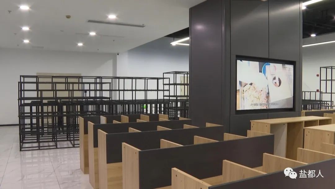 10月21日上午在位于城西南現代物流園的,華東農產品交易中心,施工人員正在對,直播間和貨物展架進行最后的布置,力爭在本月底正式對外運營